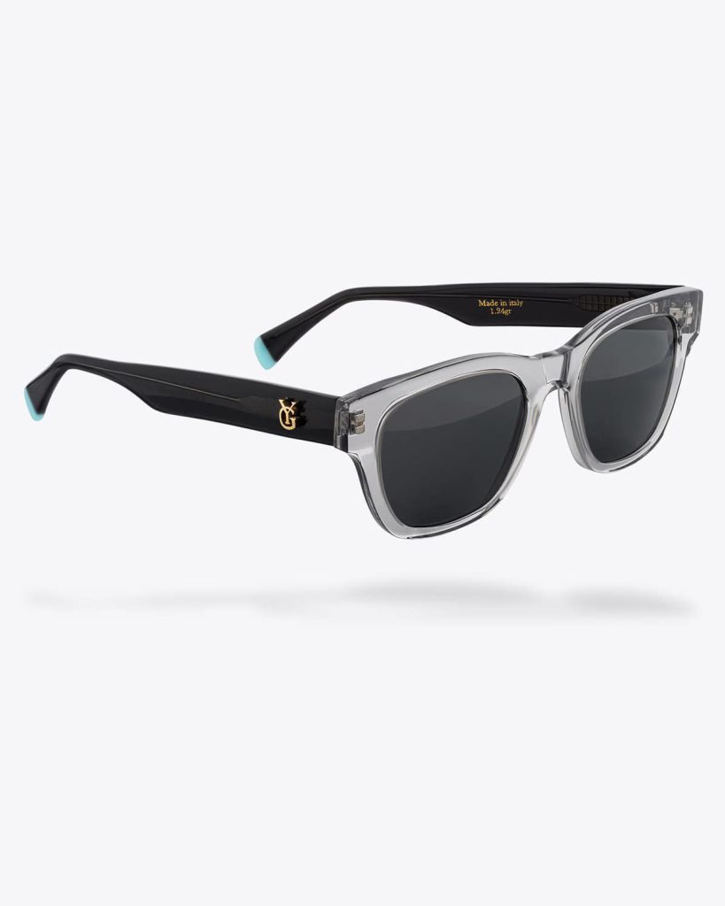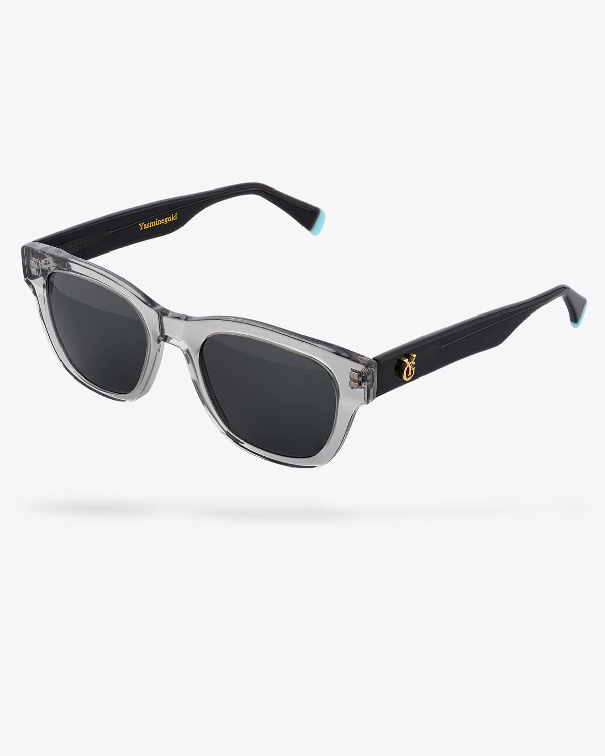 تمامی عینک های یاسمین گلد دارای لوگوی طلای ۱۸ عیار هستند که داخل عینک وزن طلا لیزر شده است ، در این مدل در ۲ طرف از لوگوی طلای (YG) استفاده شده است همچنین جنس شیشه تمامی عینک ها (Nylon UV400)میباشد